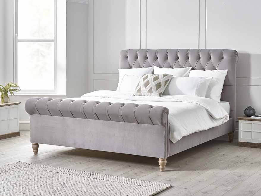 Crafted with high-quality materials, the Bromley Sleigh Bed is available in a range of luxurious upholstery options, including plush velvets, soft wools, and premium fabrics. Its sophisticated design brings both comfort and style, making it a statement piece in any bedroom.