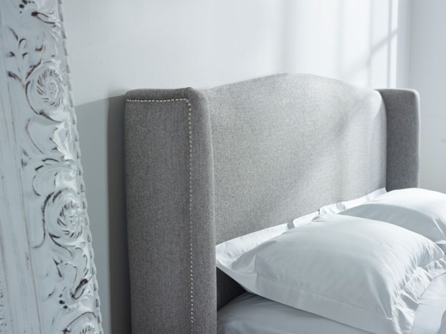 The Herriot Studded Winged Bed by Moorcroft Beds combines refined elegance with bold design. Featuring a striking winged headboard adorned with exquisite studded detailing, this bed makes a statement while offering a touch of modern sophistication.