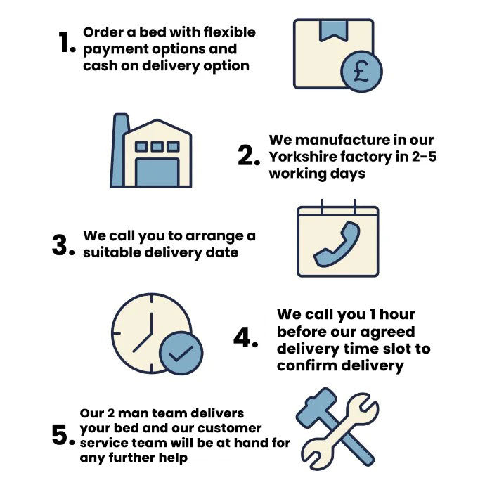 All our beds are meticulously handcrafted to order here in the UK by skilled craftsmen. They seamlessly blend practicality with exceptional style and versatility, offering a luxurious feel.