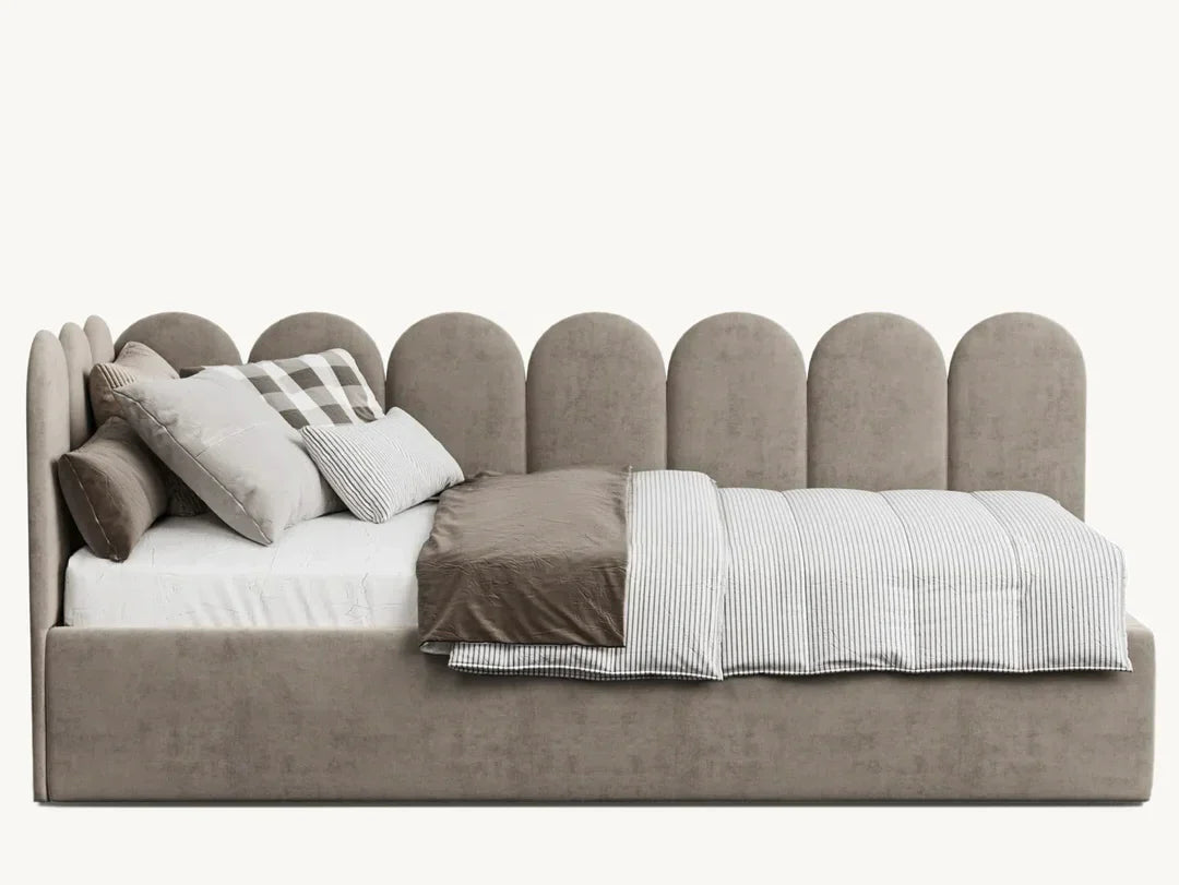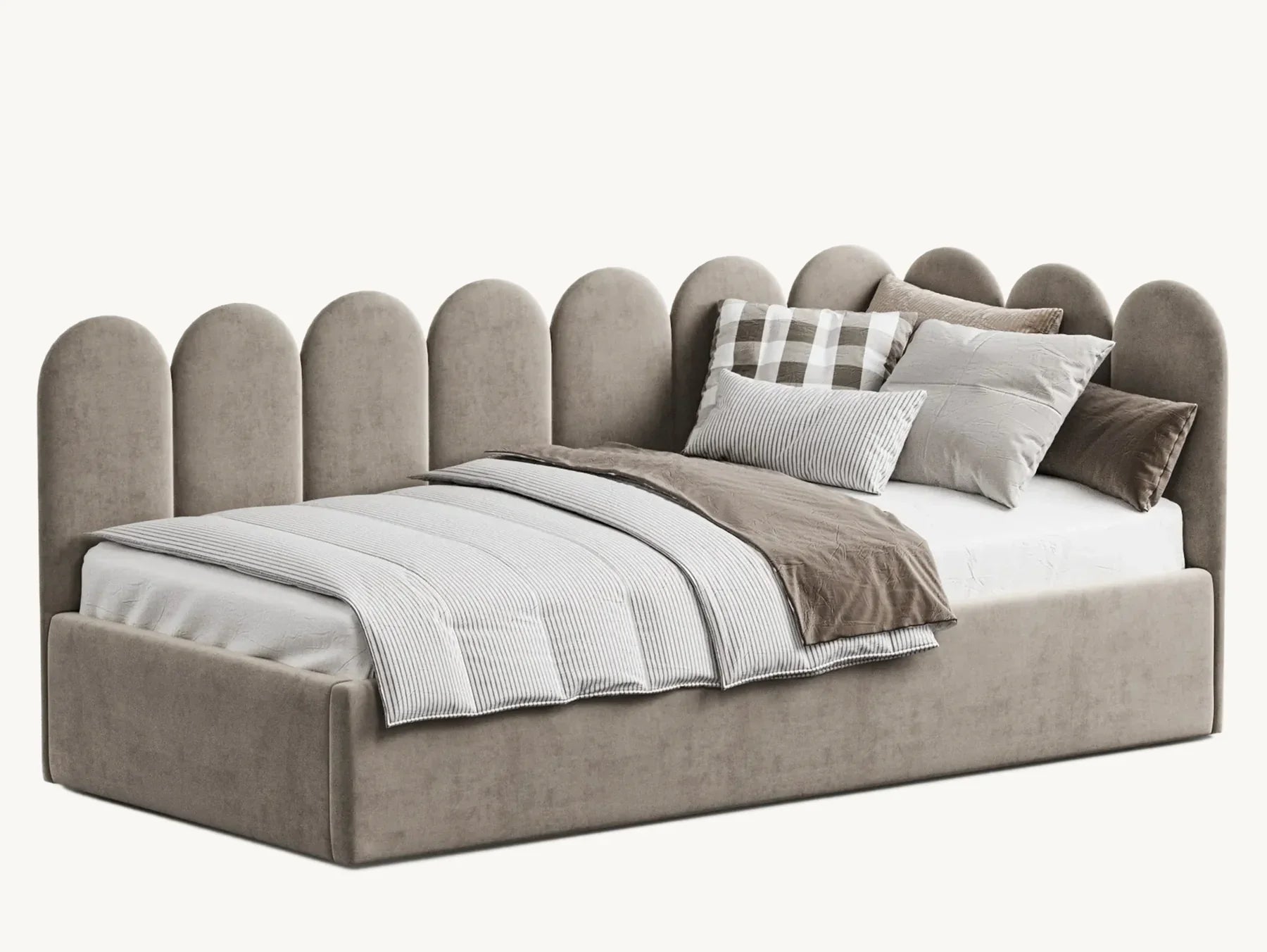 Wrapped in premium fabric, this bed seamlessly blends style with functionality. The sturdy, foam-padded frame ensures restful nights, making it an ideal choice for a dreamy and comfortable sleep.